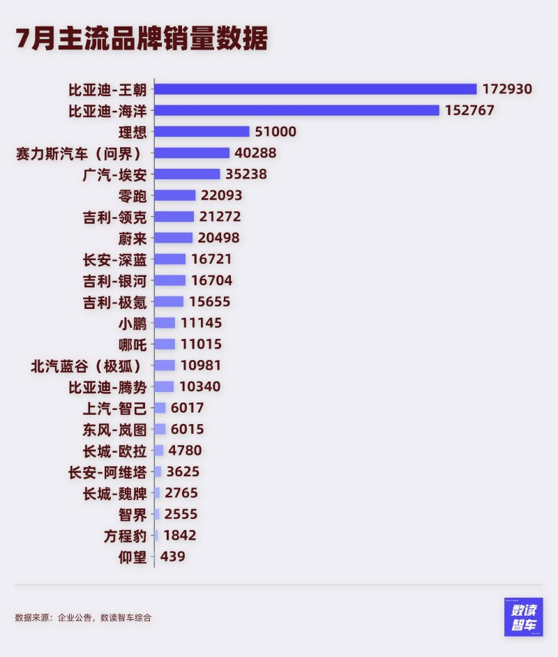 目前已经公布销量的13家车企中,只有广汽埃安和长城新能源出现了同比下滑,环比减少的也只有5家。13家车企月销量均已过万,这已经成为车企维持竞争的基础条件。