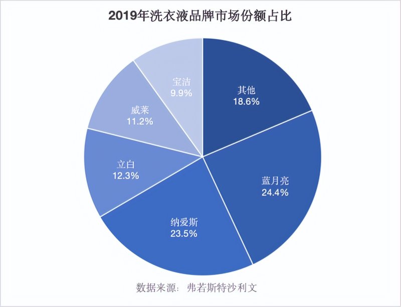 然而,随着立白、活力28等本土品牌的快速崛起以及宝洁、联合利华等外资品牌的强势进攻,蓝月亮的市场份额被快速蚕食,曾经的霸主地位岌岌可危。