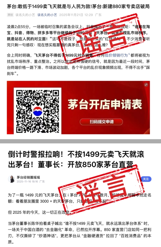 茅台将在全国拟建850家直营店?1499元飞天配额?这些信息都是谣言