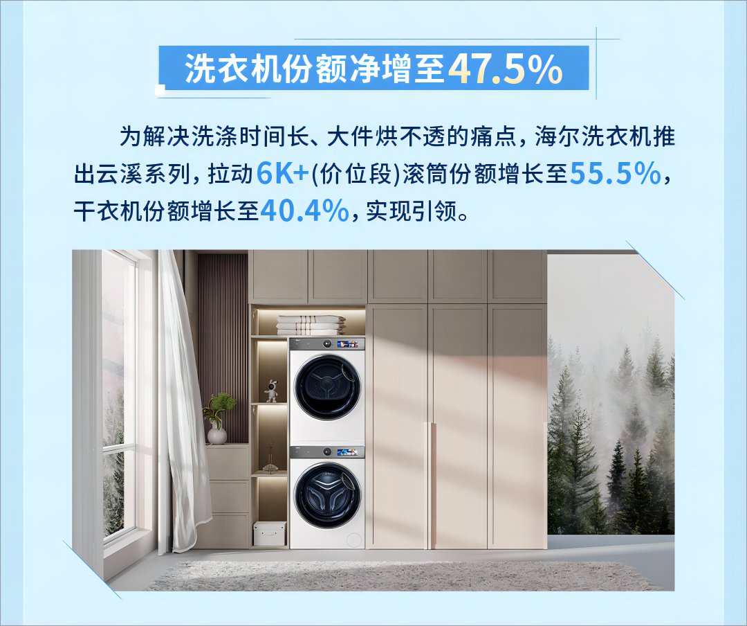 海尔洗衣机份额增至47.5%蝉联第一