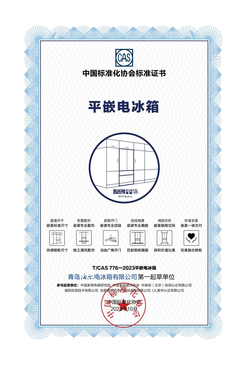 具体来看,原创《平嵌电冰箱》标准以六大嵌装技术为标准规定:原创平嵌冰箱应实现嵌装标准尺寸,冰箱尺寸匹配国际橱柜的深度、宽度尺寸标准,实现冰箱与橱柜的面面齐平;应匹配橱柜的追线设计,冰箱踢脚线、腰线高度与橱柜一致,从细节上加强融合效果,线线相通;应实现底部前置散热,让冰箱“0闪缝”嵌入的同时释放更多存储空间;应采用嵌入式铰链,保证冰箱嵌入后开门不受影响;应通过将制冷组件微缩集成等方式,释放更多内部容积,实现嵌装极限空间;最后,还应拥有专业的嵌装一体交付能力,提供更完善的安装服务和厨居融合效果。