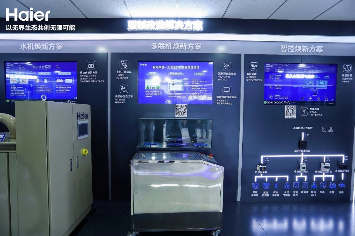 此外,以旧换新也是当前全行业的热点。目前,我国中央空调市场发展已有30余年,整体开始进入更新换代阶段。但用户换新往往面临更新工程量大、时间长、破坏装修、停业更新等问题,耗时耗力还耽误正常运营。海尔智慧楼宇则推出创新水机焕新、多联机焕新及智控焕新方案,解决了用户的后顾之忧,实现了快速更新、高效节能、智慧管理,快速响应用户升级需求。