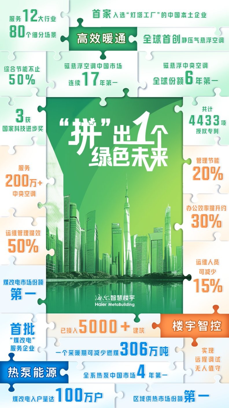 用户认可、市场领先的背后,是科技实力的支撑。当前,海尔智慧楼宇已拥有行业最多4433项授权专利、55项行业领先认证、14项国际领先科技成果,并行业唯一3次荣获国家科学技术进步奖。未来,海尔将持续以用户需求为中心,用新技术、新方案、新模式不断完善用户服务这张“拼图”,并为推动建筑低碳减排做出积极贡献。