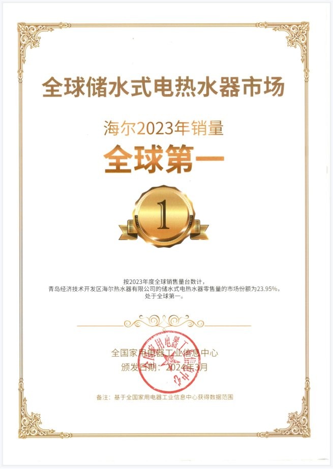 12连冠!海尔电热水器蝉联全球用户首选品牌