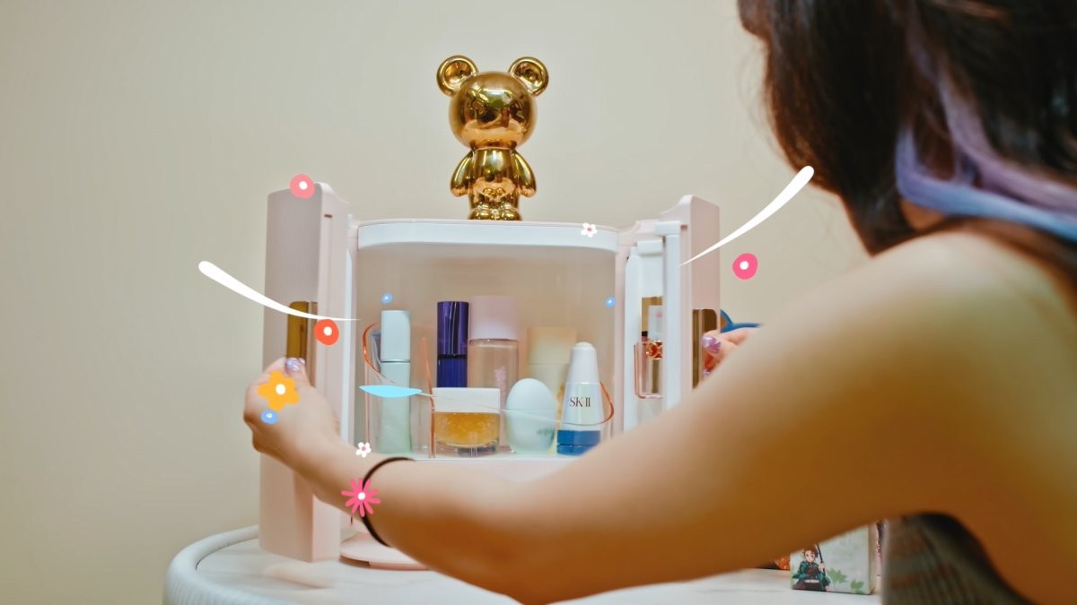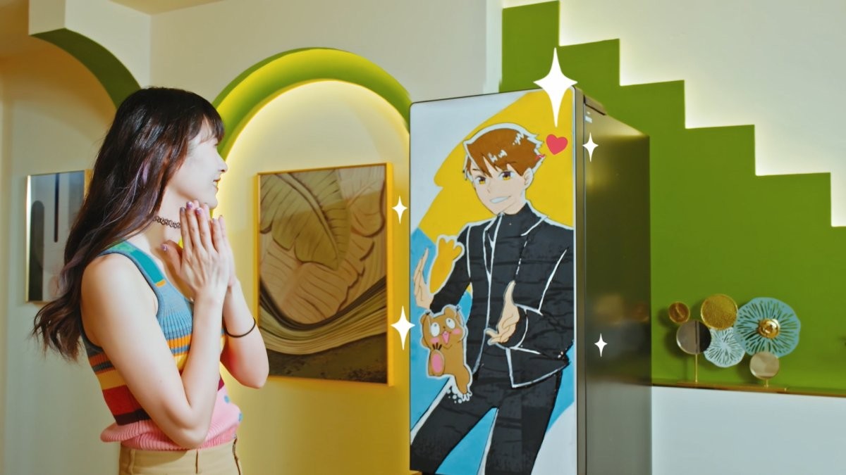 在Leader iCase小彩条冰箱上,能看到她亲手绘制的动漫人物贴膜,就像生活中的伙伴陪伴着自己。晚餐时,她会从冰箱拿出新鲜食材,准备一顿精致大餐;或者小酌一杯,独享一个人的浪漫情调。入睡前,爱日莉也会从Leader小仙贝美妆冰箱取出护肤品,冰箱不仅能减缓护肤品活性成分流失,还能用手机智能测肤,给出护肤建议,为爱美的她提供了不少便利。