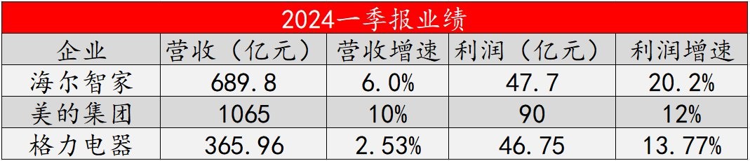 4月29日晚间,白电三巨头相继交出了2024Q1的成绩单。
