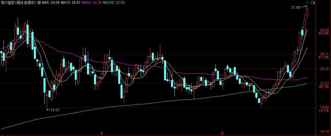 值得注意的是,以当前最高价31.90元计算,海尔智家股价距离其历史最高点仅需上涨10%以内,这一相对较小的涨幅要求进一步证明了其良好的市场前景和增长潜力。相比之下,多数家用电器个股要达到历史新高,需要超过40%的涨幅,突显了海尔智家的股价稳健表现与长期回报能力。
