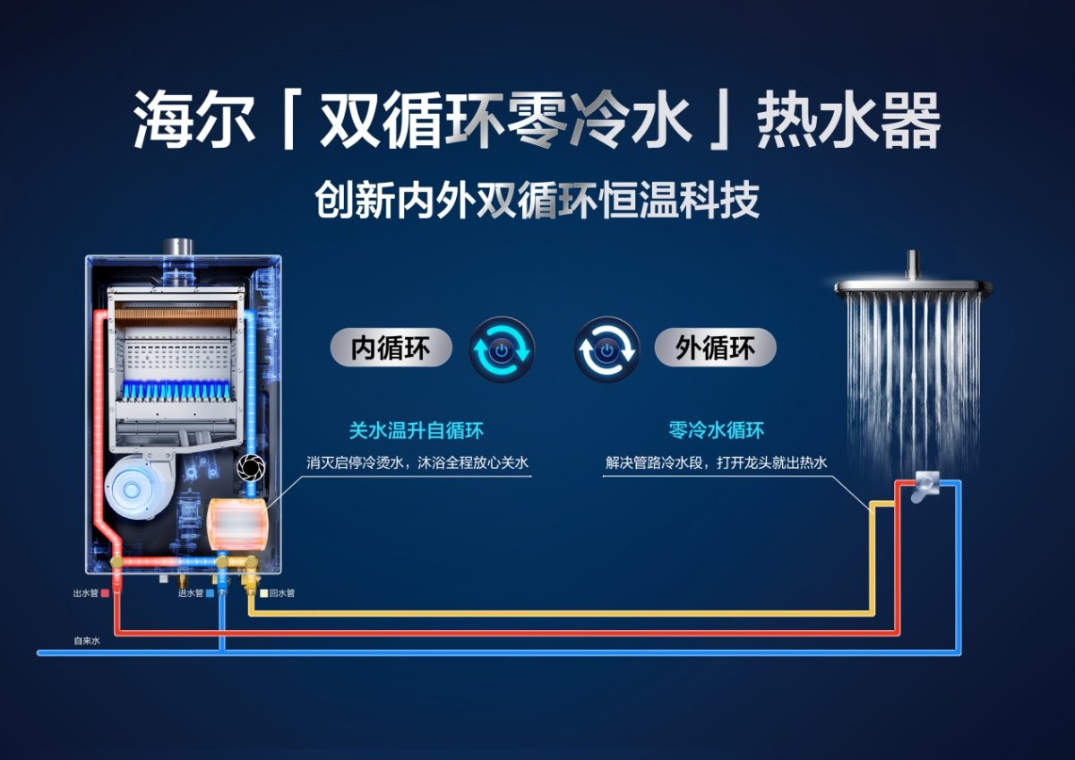 首先,海尔双循环恒温热水器能够彻底解决冷烫水难题,离不开自主研发的双循环恒温科技。一方面,海尔双循环科技先通过内循环主动识别关水温升,智能循环并加热,消除多点用水造成的水温波动,杜绝冷烫水;同时,通过外循环解决管路冷水段,使得全屋管路冷水自动循环预热,消灭管道中的冷水,避免关水温升而产生的烫水和热水器重启过程产生的冷水,为用户带来全程零冷感的恒温舒适洗浴体验,彻底解决启停冷烫水的难题。