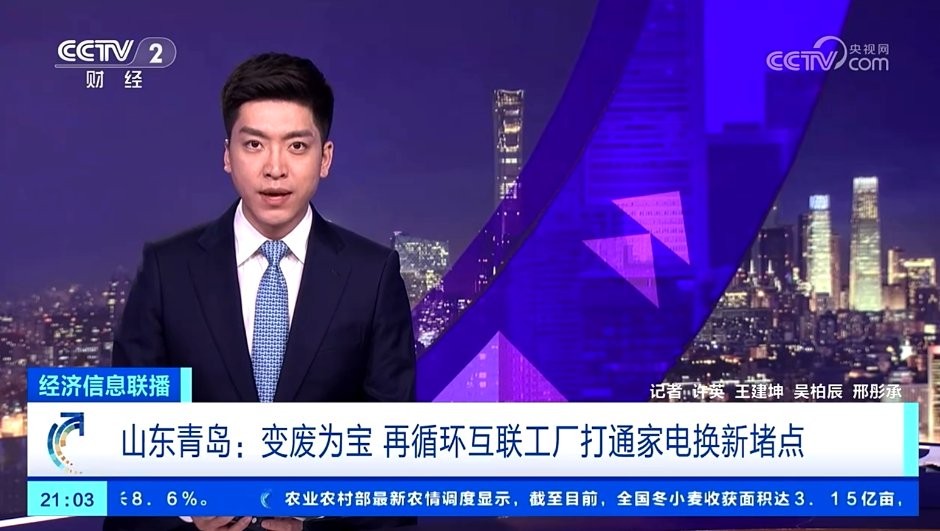 6月17日,央视财经《经济信息联播》报道海尔智家再循环互联工厂打通家电换新堵点,从回收、拆解、再生到再利用等多个环节,展现废旧家电如何变废为宝。基于全球首家再循环互联工厂,海尔智家构建起行业首个家电“回收-拆解-再生-再利用”循环闭环体系,在规范回收废旧家电的同时,通过工厂已布局的清洗-分选-造粒线体等流程,产出循环新材料,纯度高达99.9%,物性近乎零衰减,性能堪比新料,可广泛应用于各个领域,实现循环利用。