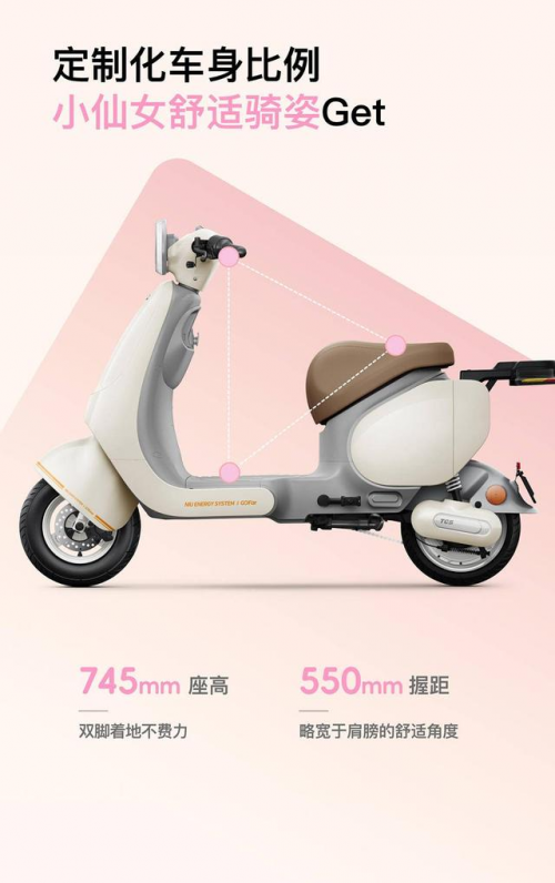 小牛电动车小O系列的设计理念源于对女性美学的深刻理解,它将经典与创新完美结合,打造出既可爱又时尚的电动车形象。车身线条流畅、色彩搭配柔美亲和,每一个细节都透露出对女性用户的贴心关怀。3D结构设计的棉花糖坐垫,抗菌材质的软弹握把,745mm的座高和550mm的握距,都是基于女性的身体结构和使用习惯精心设计,确保了骑行的舒适性和便捷性。