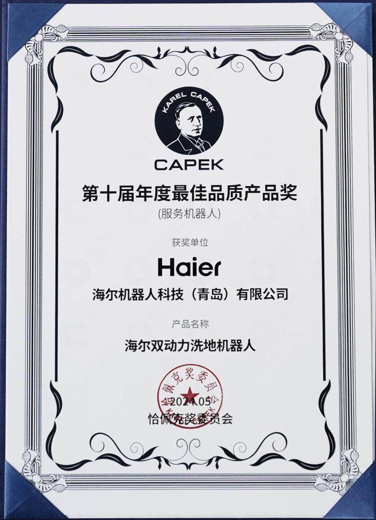 精工匠心!海尔机器人双动力洗地机获“恰佩克年度最佳品质产品奖”