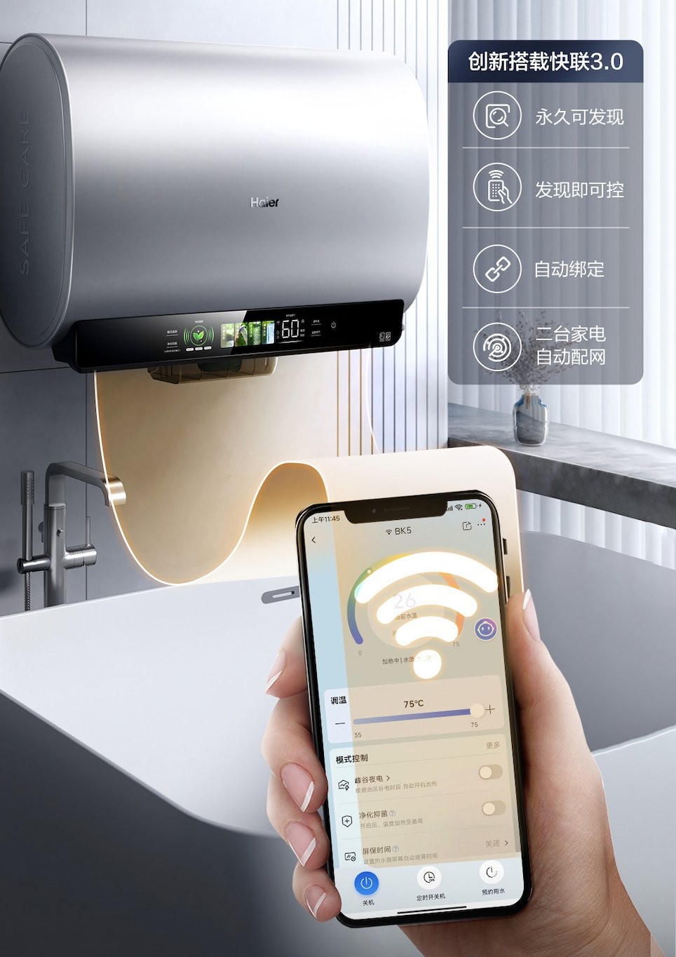作为年度双胆热水器爆款,海尔小魔盒热水器BK5领先行业一步洞察到沐浴用水便捷化、智能化的需求趋势,在产品创新的同时坚持场景科技进化,并与用户的实际需求深度结合,打造出更多元化的高端沐浴场景。海尔小魔盒BK5搭载的智能管家黑科技,可以解放双手打造智慧节能沐浴场景,其搭载的高精度水温、水流传感器,能够实时监测用水变化,智慧芯片依据海尔大数据精细运算,自动开启温水模式或关机,轻松省电便捷省心,搭配上峰谷不同加热模式,最高省电50%。