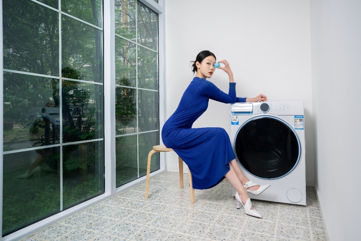 Leader元气空调也是出镜率极高的“模特”之一,客厅里的柜机简约大气,卧室里的挂机也以斐波那契黄金比例带来了清新治愈的元气美学。在空调柔冷匀热的舒适风感下,刘怡菲可以随意切换穿搭风格,不必担心因衣裙单薄而受凉。换下来的衣服就交给Leader云朵小蓝盒洗衣机,洗衣、杀菌一步到位,下次出镜依然质感如初。