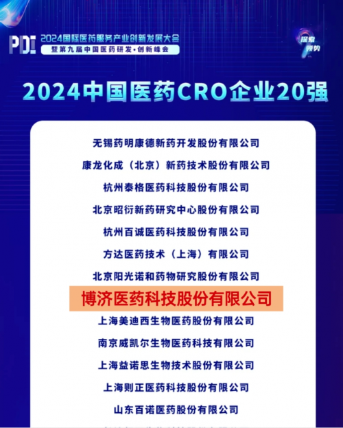 博济医药相关负责人表示,获此殊荣是行业同仁对博济医药的高度肯定与认可。作为国内领先的CRO公司,博济医药将充分发挥自身在CRO领域20多年来的深耕优势,全面拓展创新药CRO服务产业链布局和国际化发展,为医药产业创新发展贡献力量。