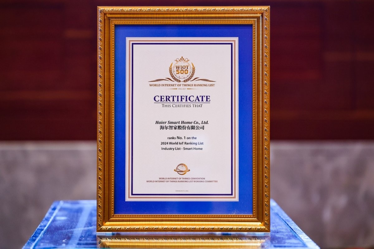 智慧家居业第一!海尔智家上榜2024世界物联网500强