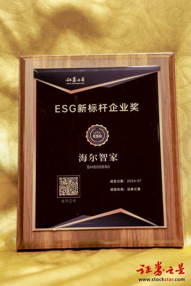 7月19日,“新视野 新未来”2024证券之星ESG研讨会圆满收官。会上,为表彰经济效能与社会责任并重的绿色企业,证券之星联合华证指数发布了2024年《ESG投资价值TOP100榜单》。其中,海尔智家综合评价AA级,家电行业评级最高。同时,海尔智家还获得了ESG新标杆企业奖。