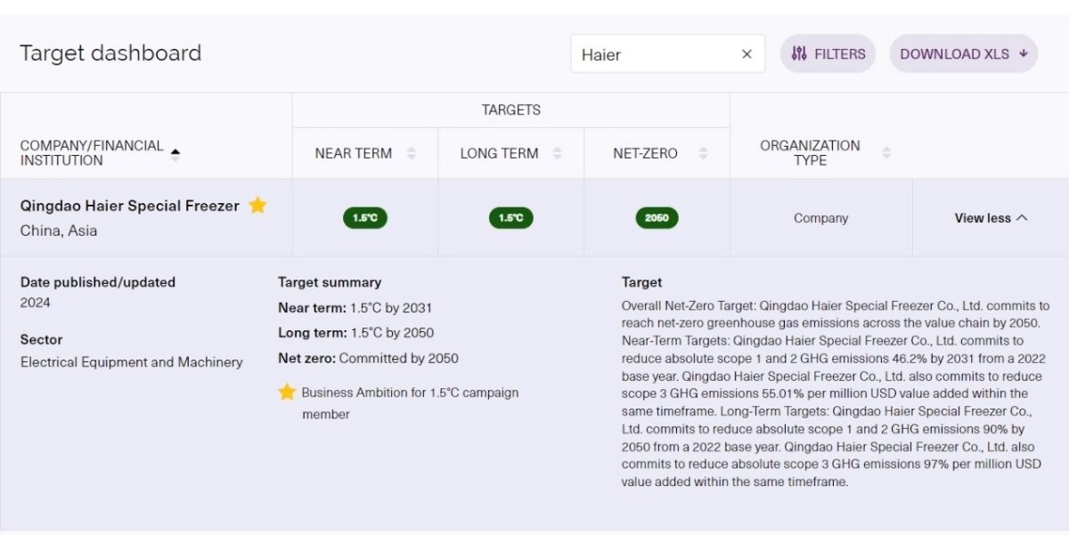 全国领先!海尔冷柜通过SBTi科学碳目标双项审定