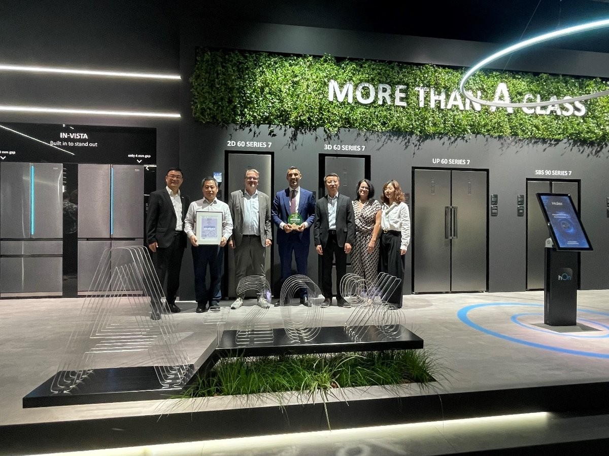 在IFA现场,海尔冰箱展出了全A能效、全场景保鲜系列方案。其中,More than A class“不止于A”展区集中展示了海尔冰箱的节能成果:海尔意式两门、三门冰箱及海尔对开门冰箱。不仅全部达到新欧标A级,海尔意式两门冰箱还优于新欧标A级20%,即比A级能耗再降20%,引领绿色可持续发展潮流。