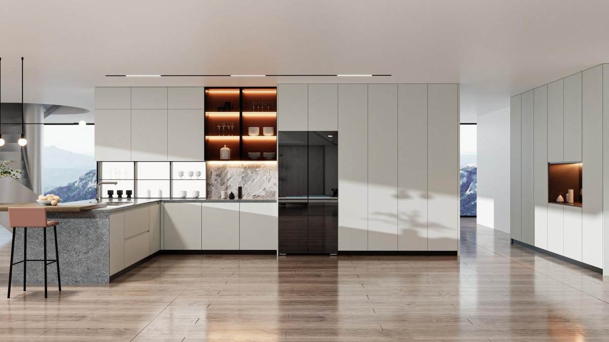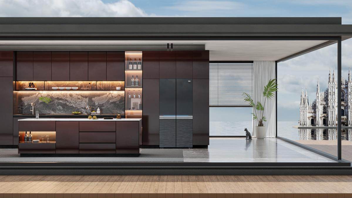 于外,海尔和悦冰箱搭载了594mm专业超薄零嵌科技,释放出更多的厨居空间。凭借领先的散热、嵌装、铰链等技术,真正实现“正面平齐、两侧零嵌”完美融合,占地面积仅0.51㎡,搭配黑钻镜面面板的反射和透视效应,视觉上进一步延伸空间。