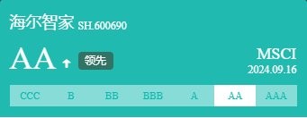 MSCI:海尔智家ESG评级升至AA,国内行业最高