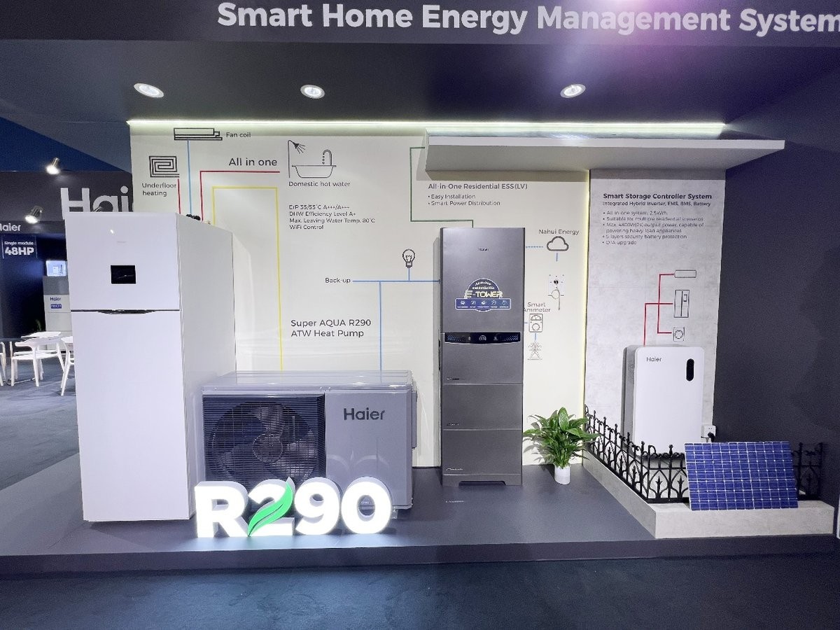 除多联机方案外,海尔智慧楼宇在当前各行业聚焦的热泵技术领域也早已发展成熟。现场展示的R290 ATW热泵解决方案,做到了35℃和55℃出水能效达A+++。在定制的All in one方案中,生活热水能效还达到了欧标最高等级A+。不仅如此,该方案还能与光伏、太阳能、燃气锅炉等形成多能互补的综合能源解决方案,绿色又环保。