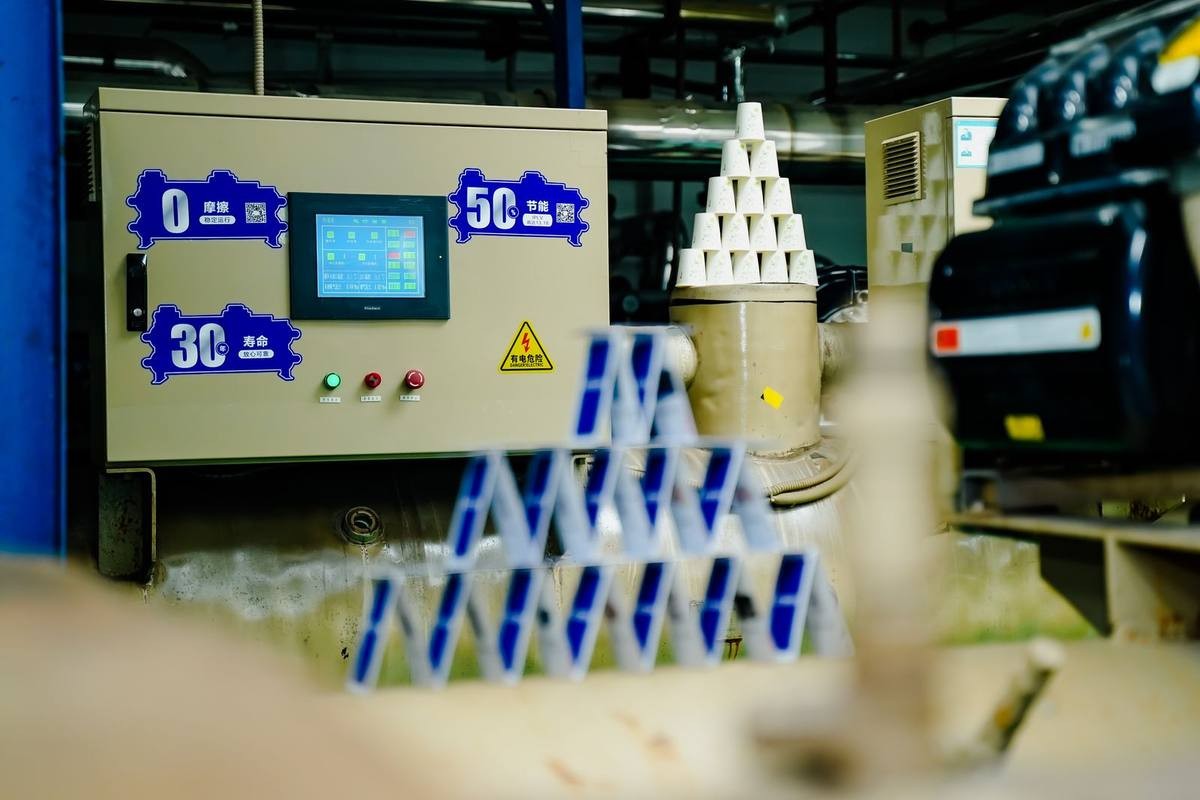 活动现场,嘉宾们一起走进了酒店机房,看到了这台运行了16年的幕后节能功臣。海尔智慧楼宇技术经理邓志英表示,不同于传统机组,海尔磁悬浮空调虽重达几十吨,但运转噪音却并不大,正常社交距离内并不影响交流。立于机组上的1元硬币、纸杯塔,也说明了机组启停无喘振、运行稳定,保障机组正常使用寿命。