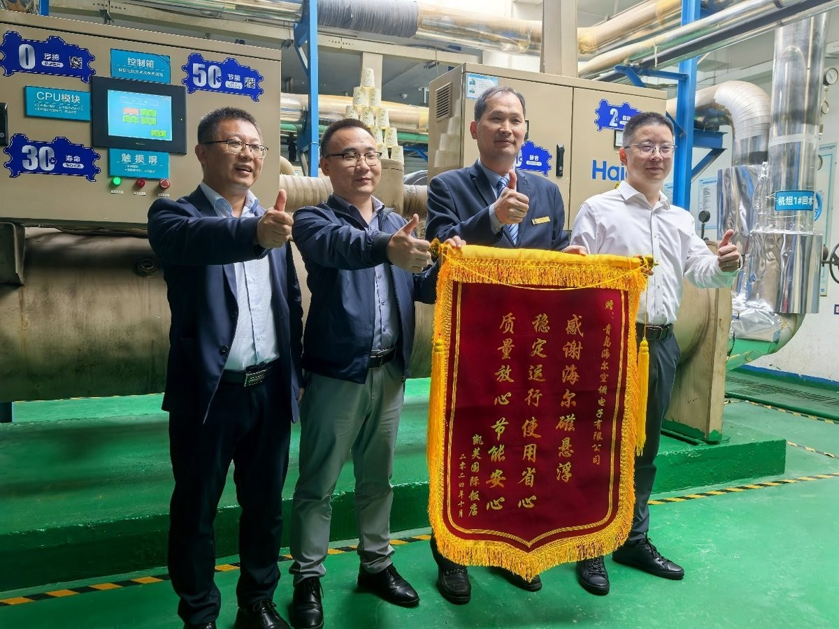 在参观过程中,用户为大家算了笔账:在今年刚过去的6-9月份,酒店空调24小时运行,核算下来以后,空调总电费比传统方案节省约22万元。按照耐用30年来算,将为酒店节省电费、维保费及二次设备采购费用近千万元。为此,用户还为海尔智慧楼宇颁发锦旗和感谢信,为16年间的高品质点赞。