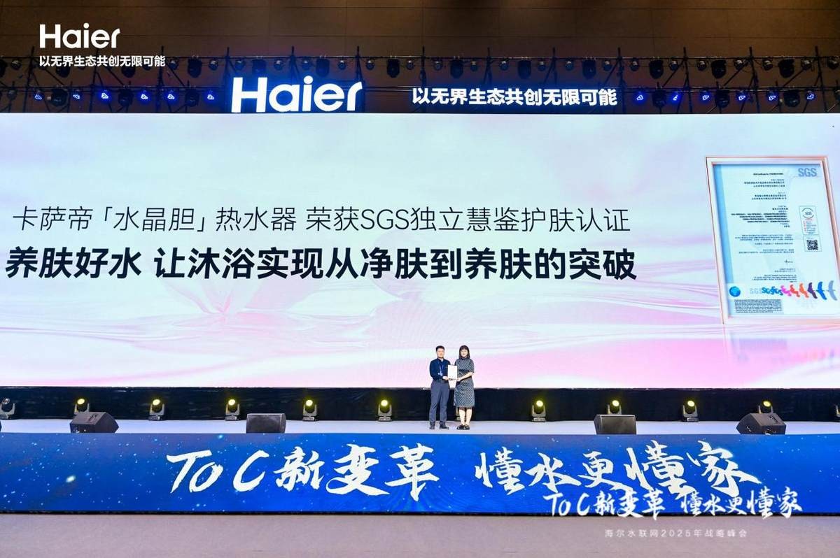伴随用户生活品质提升,用户开始追求更健康舒适的洗浴体验。而卡萨帝「水晶胆」热水器独创微米级水晶层与“黄金”高分子层的结合,以“0金属、0锈水、0镁垢”打造健康纯净的养肤沐浴。同时,通过PCC岩石活化技术向水中释放富含“锶”的矿物质,长期使用可让用户肌肤水润有光泽。现场,国际公认的测试、检验和认证机构SGS还为卡萨帝「水晶胆」热水器颁发“养肤好水”认证,足见业内对这款热水器的认可。可以说,随着专业机构对海尔热水器产品颁发双重认证,这也预示着海尔将引领行业专业规范标准的确立,进一步赋能热水器行业科技创新方向。