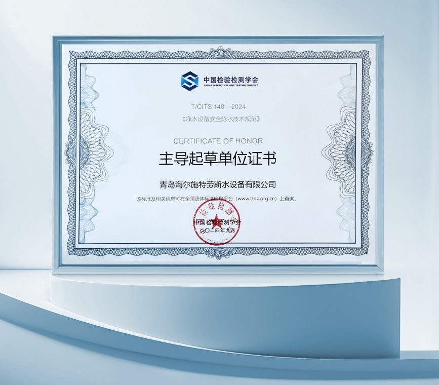 为保障用户健康饮水体验,海尔净水牵头发布行业首个《净水设备安全陈水技术规范》团体标准,该标准编号为T/CITS 148—2024,由青岛海尔施特劳斯水设备有限公司提出并牵头,中国检验检测学会归口,联合中国家用电器研究院共同制定。这一标准发布明确净水产品“安全陈水”的术语和定义,从出水水质、抗菌性能、脱盐率等维度规范“鲜活水”的技术要求和试验方法。