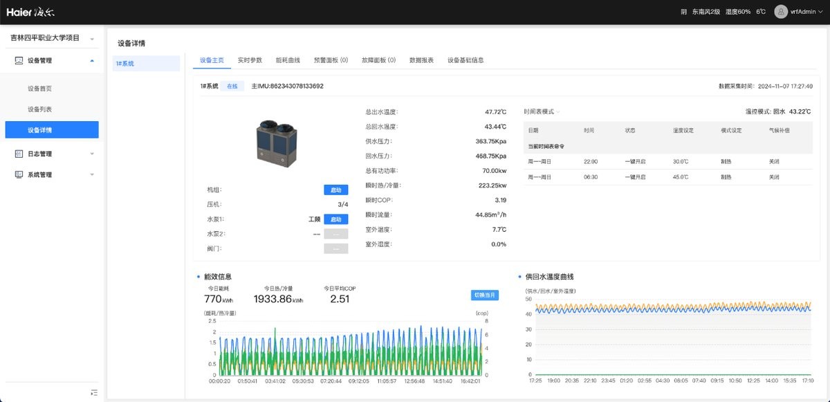 “以前越是冷的天气越需要人多次巡检,以确保设备管路不会冻坏。一趟下来,浑身都冻透了。而且管理主要靠经验,节能效果难以保证。现在,动动鼠标就能查看设备的运转情况,还有节能模式,舒适省电两不误”,四平职业大学的设备管理人员提到。海尔空气源热泵不仅节能,其搭载的智控方案还带来了高效管理体验,获得了校方认可。