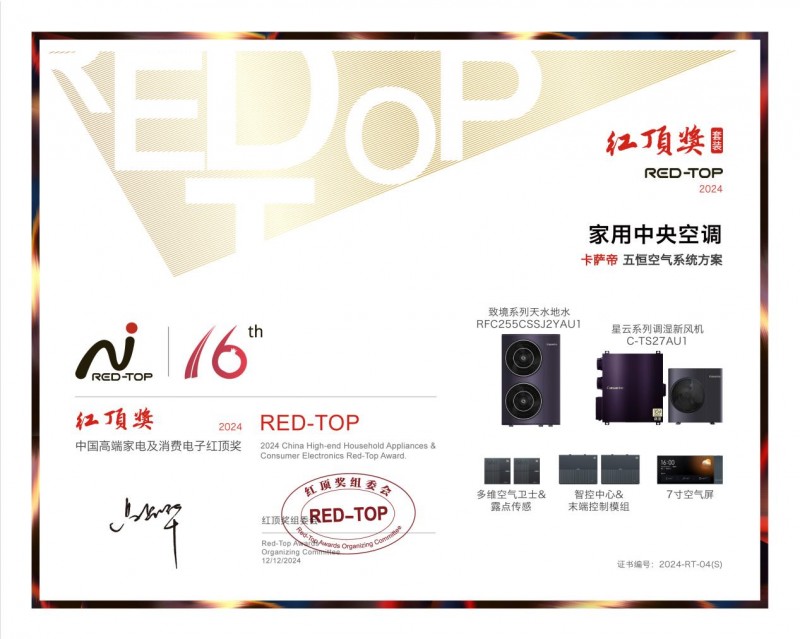 12月12日,第16届中国高端家电趋势发布暨红顶奖颁奖盛典在北京举行,卡萨帝五恒空气系统方案斩获红顶奖。自2010年红顶奖创立以来,卡萨帝已累计登榜24次,用创新构筑起了行业竞争壁垒。而除了红顶奖,卡萨帝还获得超过200项国际大奖、4项专利金奖,每一件获奖产品的研发思路都始于用户需求,最终也用于回馈用户。