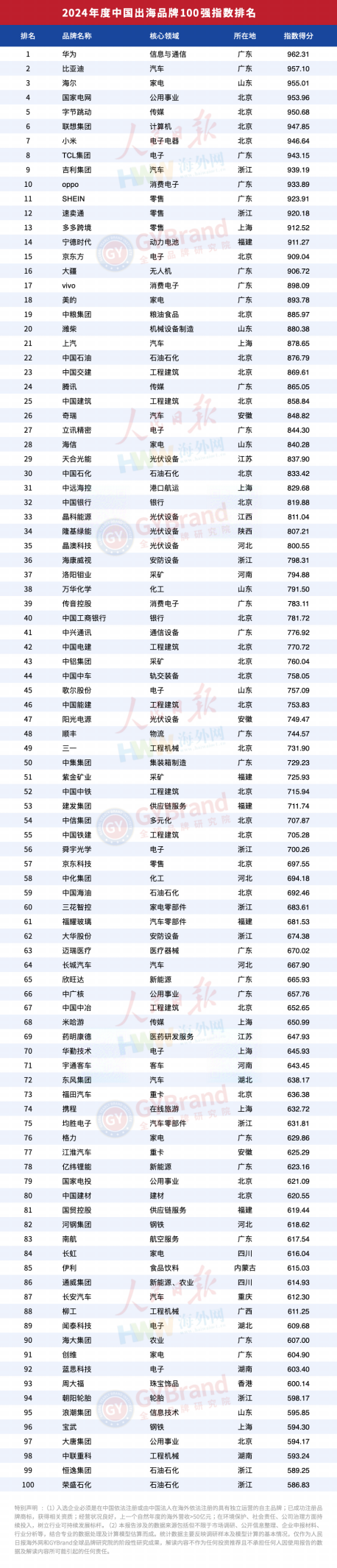 由人民日报海外网携手GYBrand全球品牌研究院联合编制的2024年度中国出海品牌100强指数,主要是从海外业绩、品牌建设、品牌贡献、可持续发展等四大维度若干项指标对中国出海企业进行综合评价分析的。这是一份全面展示新时代中国出海品牌高质量发展最新成就的研究报告,同时也是衡量中国出海企业品牌价值的风向标。
