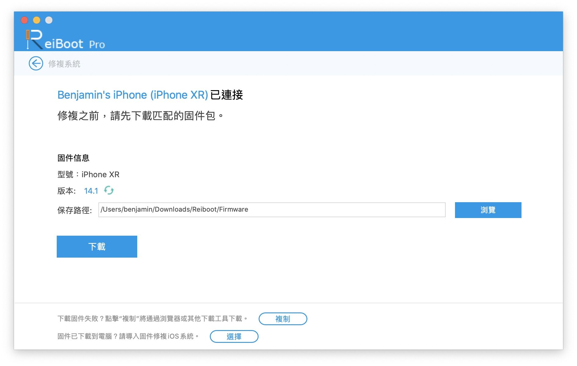 如果想将 iOS 降级又或者重新下载最新 iOS,用户只要选“修复系统”功能即可。
