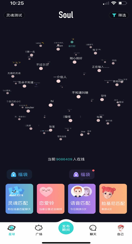 在人际关系愈加疏离,恋爱愈加艰难的今天,只要左滑右滑,或者打开LBS功能,就能轻松实现看脸速配。其他软件大多都颜值当道,soul却反其道而行。用户进入soul界面,要先完成一整套心理测试题,从而便于区分灵魂所在星球。在社交动作开始时,app会先匹配灵魂契合程度,隐藏颜值。