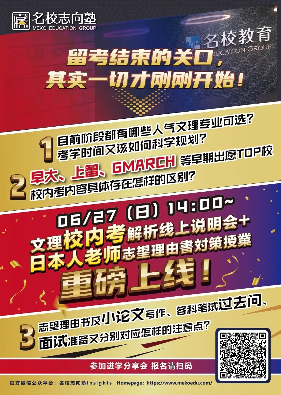 以上就是本期留考点评,最后名校志向塾祝各位考学顺利。